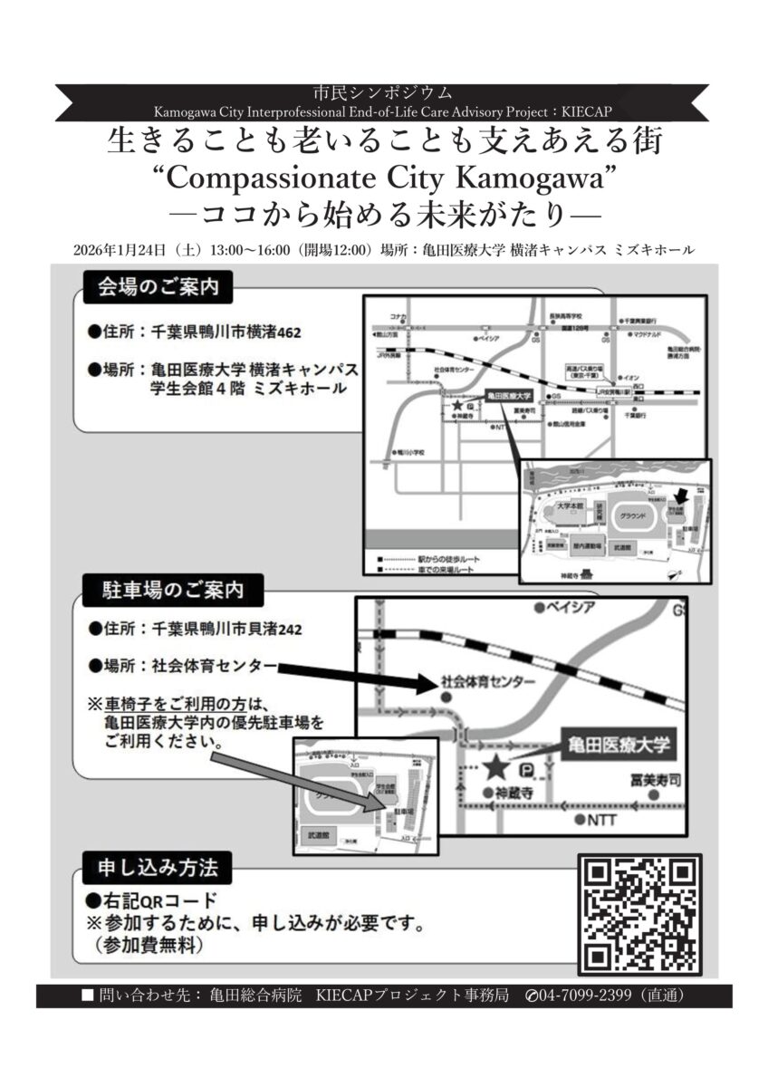 亀田総合病院主催の市民シンポジウムに、当会代表(会長)の柴田久美子が参加いたします。